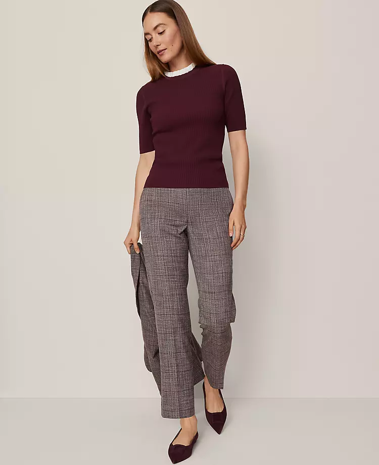 Refined and timeless, these pants are designed in our signature four-way stretch that holds its shape while flattering yours. Side zip with hook-and-eye closure. Back besom pockets.