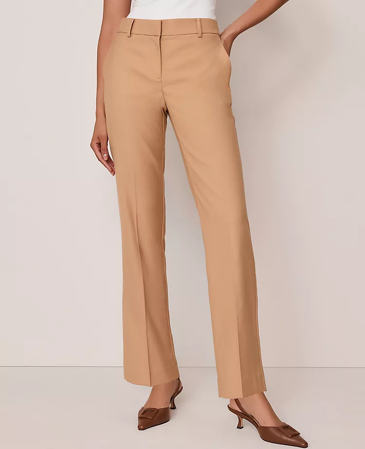 Our straight-leg pant is polished and tailored with a full-length, elongating leg. Front zip with a hook-and-bar closure. Belt loops. Front off-seam pockets. Back besom pockets.