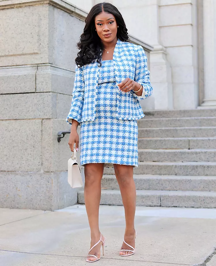 Weave some magic into your wardrobe with our tweed shift dress, cut with a flattering square neck. Square neck. Sleeveless. Hidden back zipper with hook-and-eye closure. Lined.