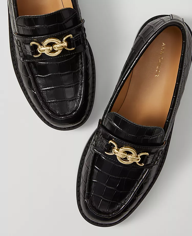Discover Ann Taylor Weekend. Effortlessly polished pieces for wherever your plans take you. Featuring an exotically embossed croco design, these loafers give every look a luxurious yet understated upgrade. Padded footbed for comfort. 1” heel.