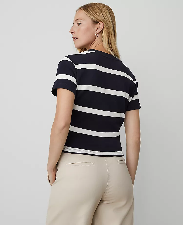 Discover Ann Taylor Weekend. Effortlessly polished pieces for wherever your plans take you. This soft tee ends with a flattering twist that updates laid-back outfits. Round neck. Short sleeves.