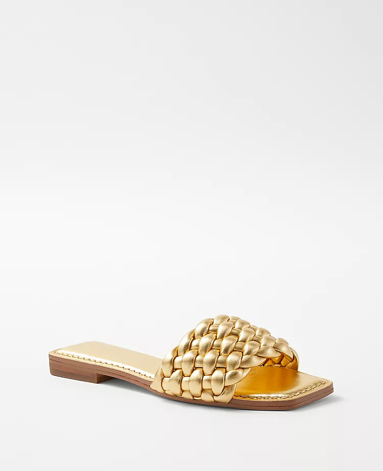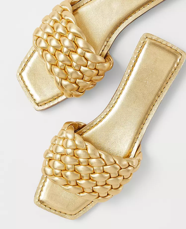 Easygoing and endlessly wearable, our woven leather slide sandals always make an entrance. Open toe. Padded footbed for complete comfort. 1/2″ heel.